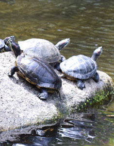 鳴きもせず亀の呑気さ阿弥陀池 阿波野青畝 湯治して一人は亀が鳴くと言ふ 阿波野青畝 亀鳴くと詠ひし吾をなとがめそ 阿波野青畝 鳴かずしてでんぐり反る亀の所作 阿波野青畝 亀鳴くと塔婆の池をたもとほり 阿波野青畝 祠の戸開きぬと亀の鳴くならん 阿波野青畝 亀鳴くと衣掛松の辺に来たり 小路智壽子 亀鳴くや百夜通ひの道行けば 小路智壽子